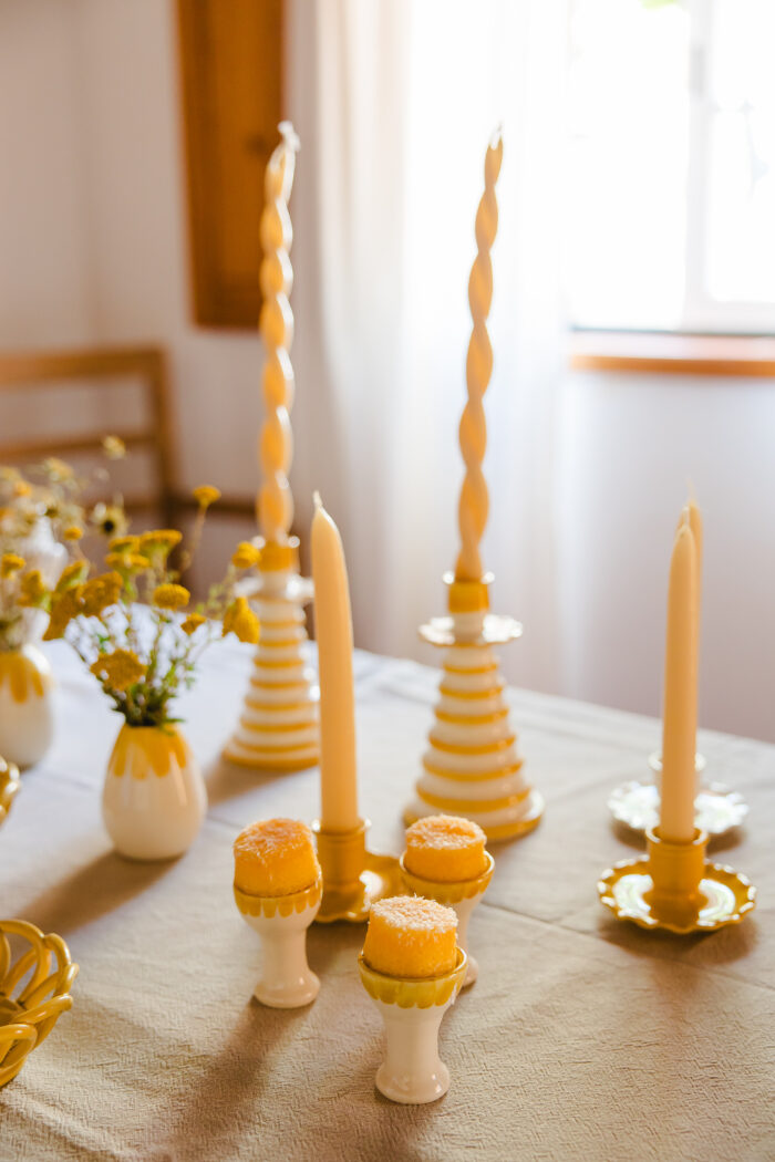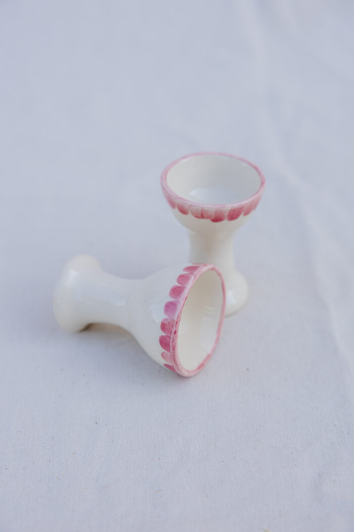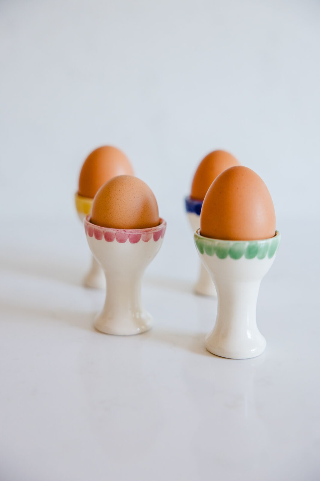 Um copo para ovo feito e pintado à mão numa olaria portuguesa.