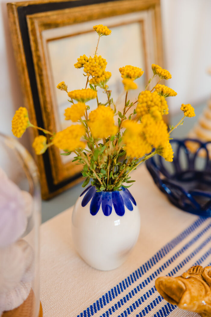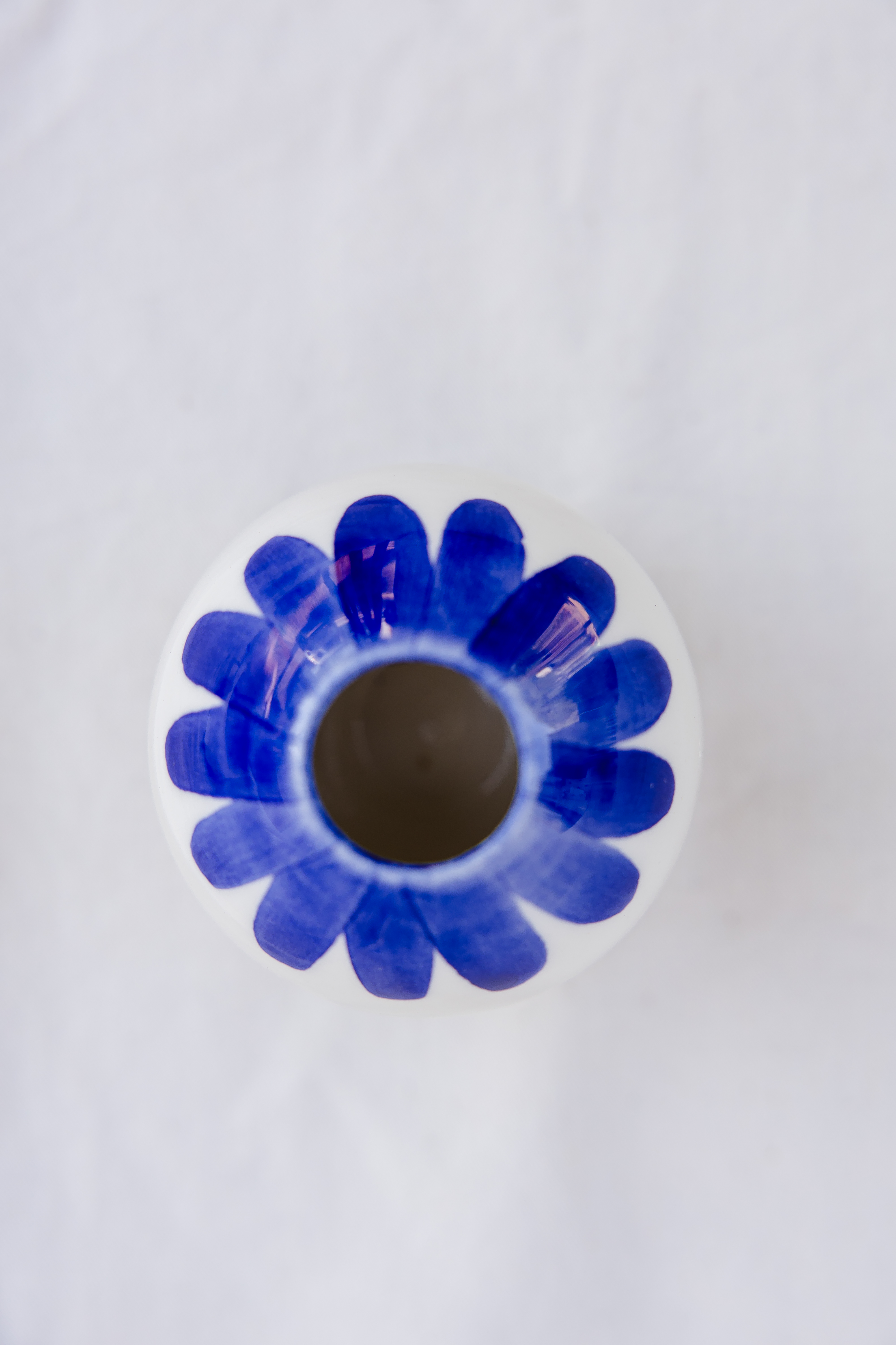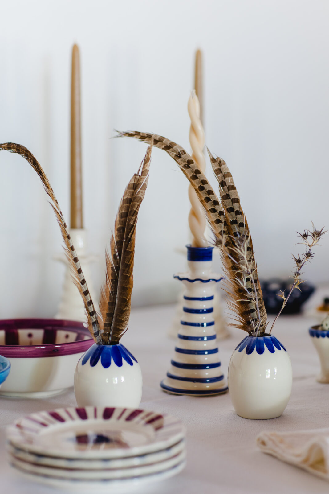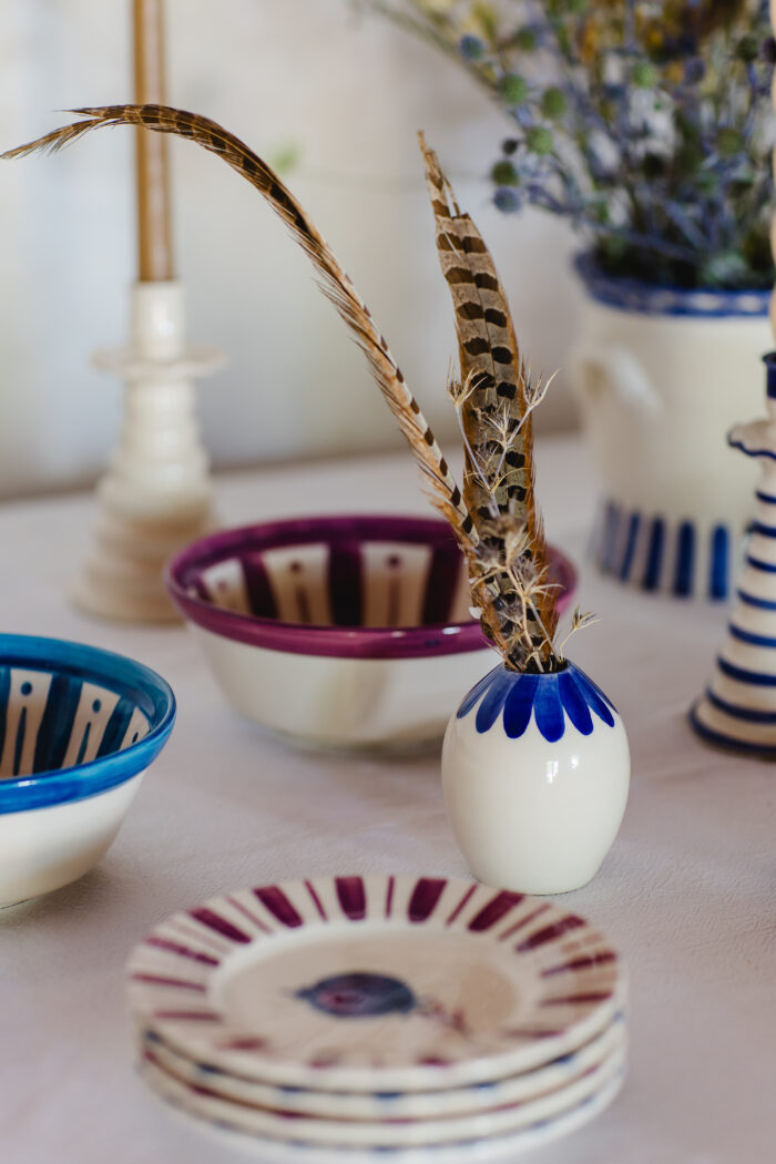 Uma pequena jarra feita e pintada à mão numa olaria portuguesa.