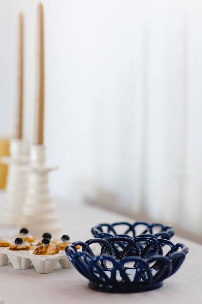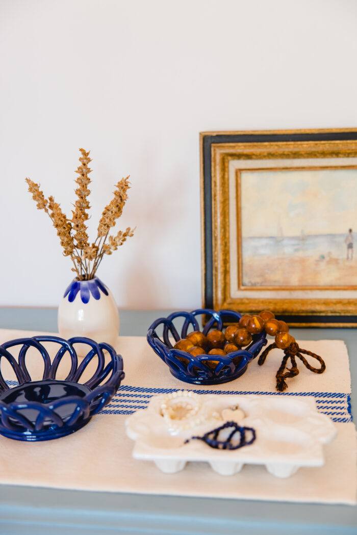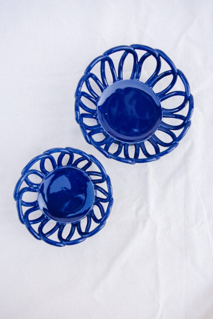 Pequenos cestos em cerâmica azul