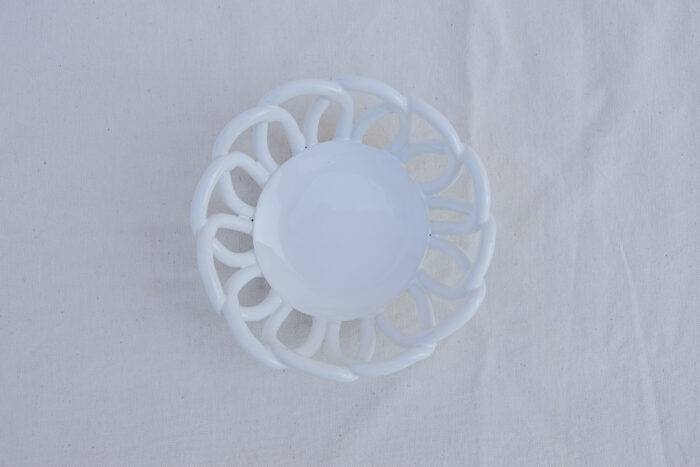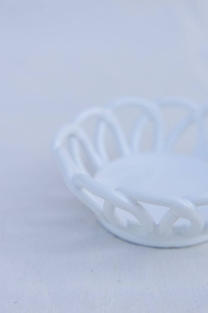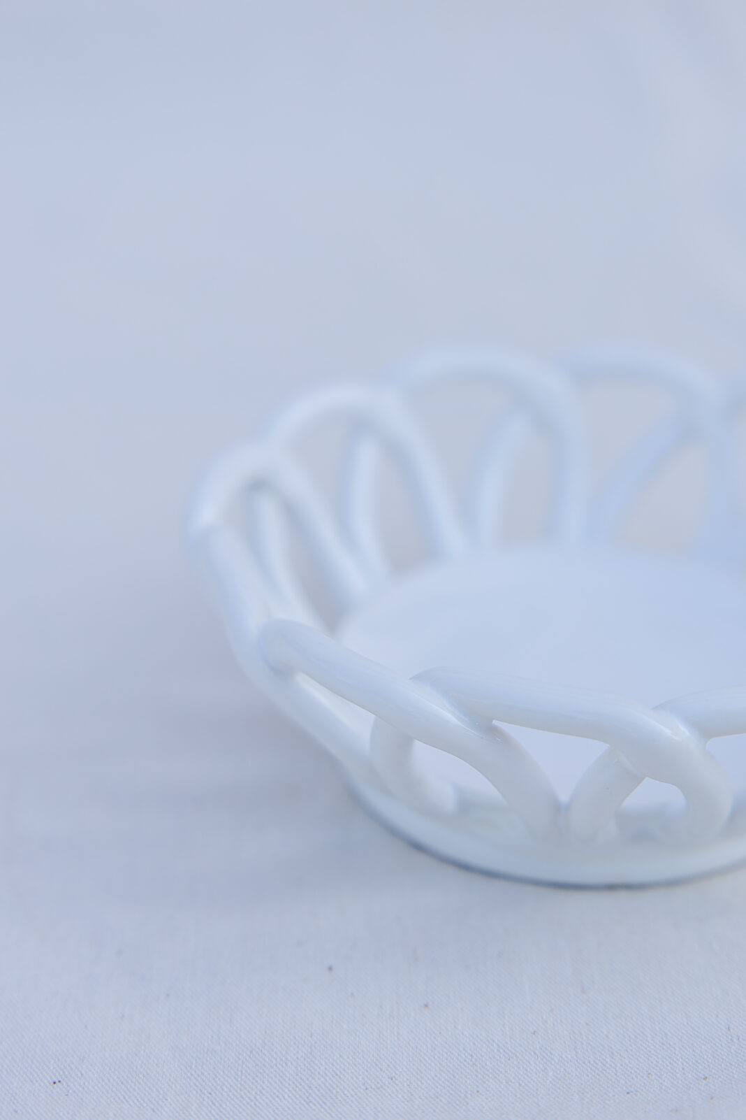 O pequeno cesto de ceramica nasce pelas mãos de uma artesã, que habilmente entrelaça cada peça e lhe dá a forma final. Reinterpreta  de uma forma atual os tradicionais cestos em vime, combinando tradição e modernidade.