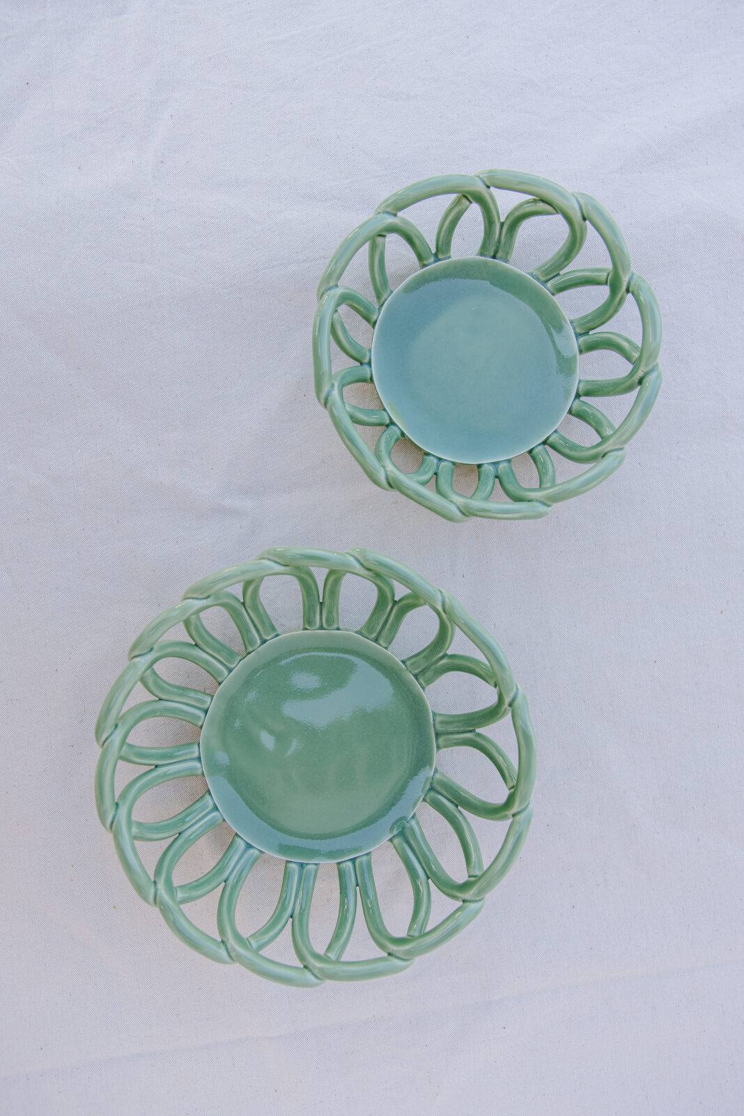 Pequenos cestos em cerâmica verde claro