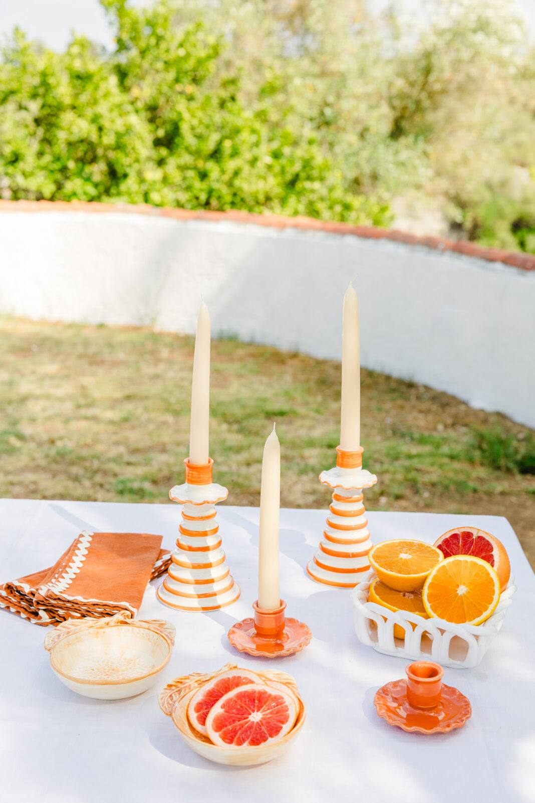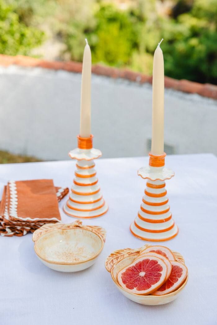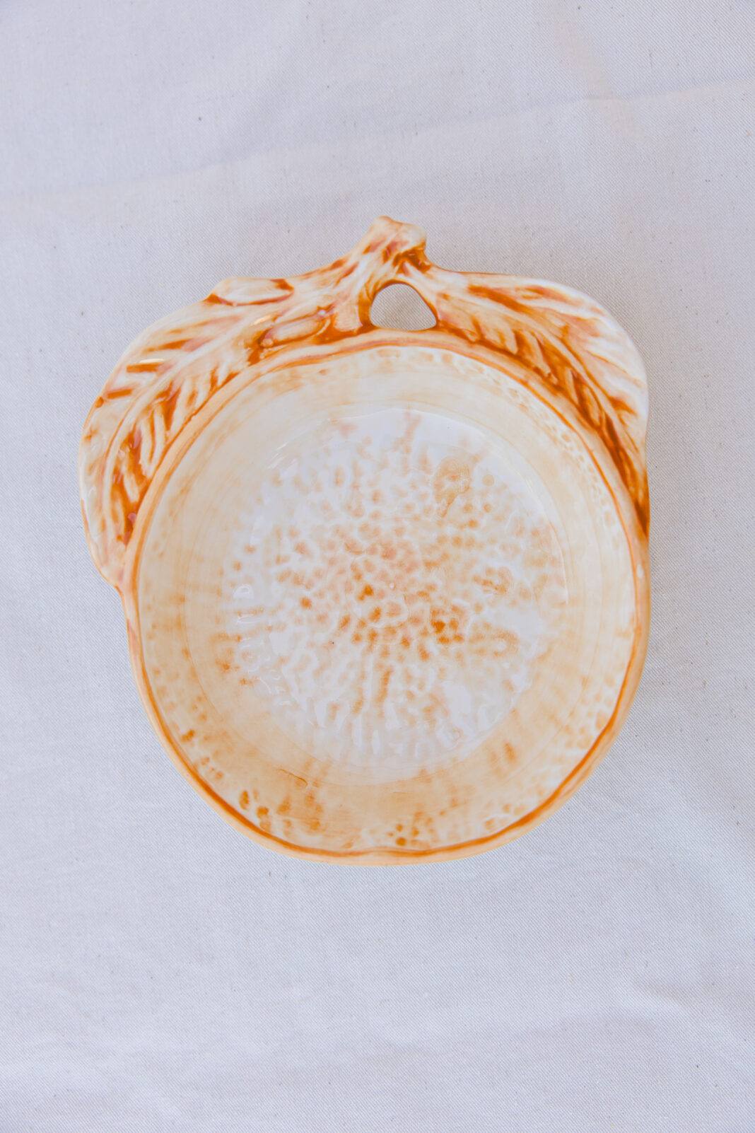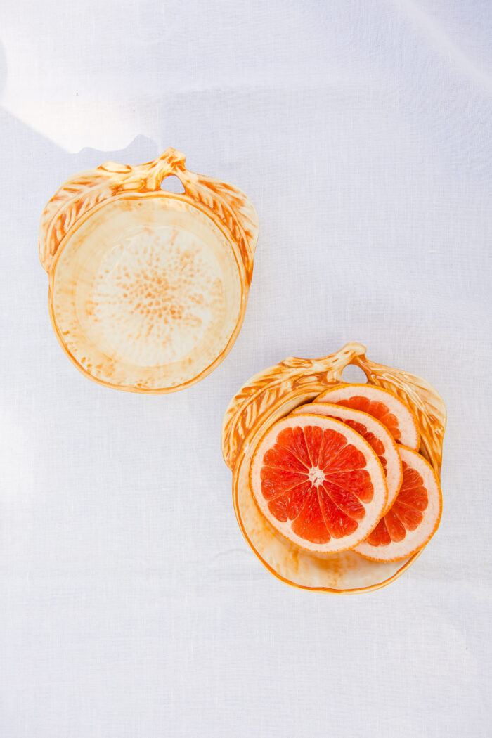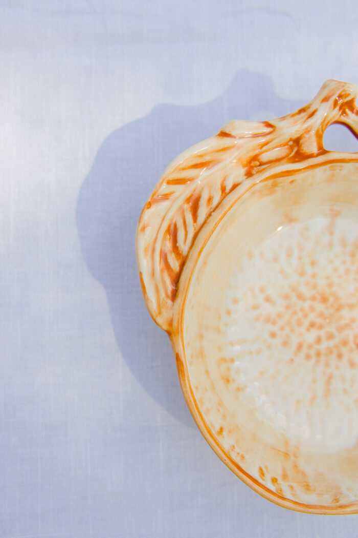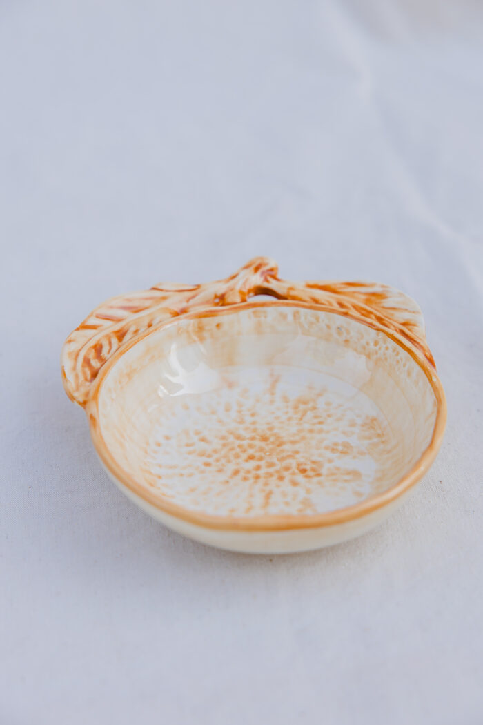 Uma taça em forma de laranja, feita em faiança e pintada à mão para realçar os traços que a tornam encantadora.