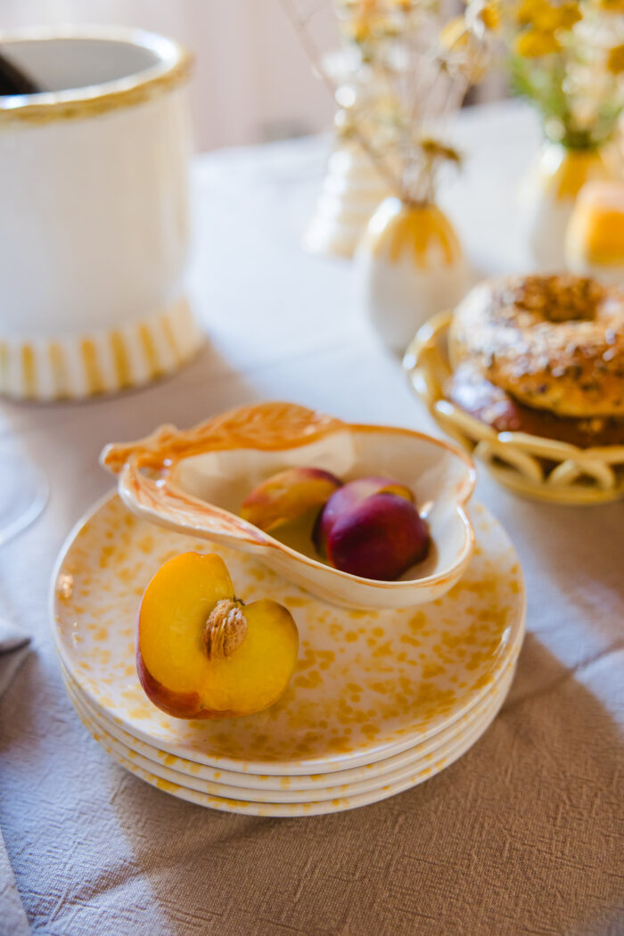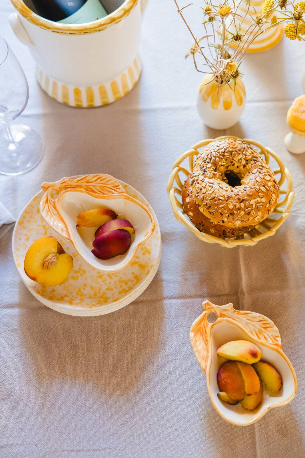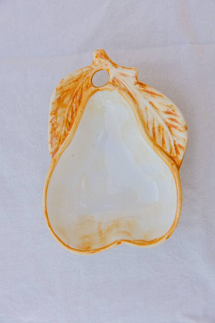 Uma taça em forma de pêra, feita em faiança e pintada à mão para realçar os traços que a tornam encantadora.
